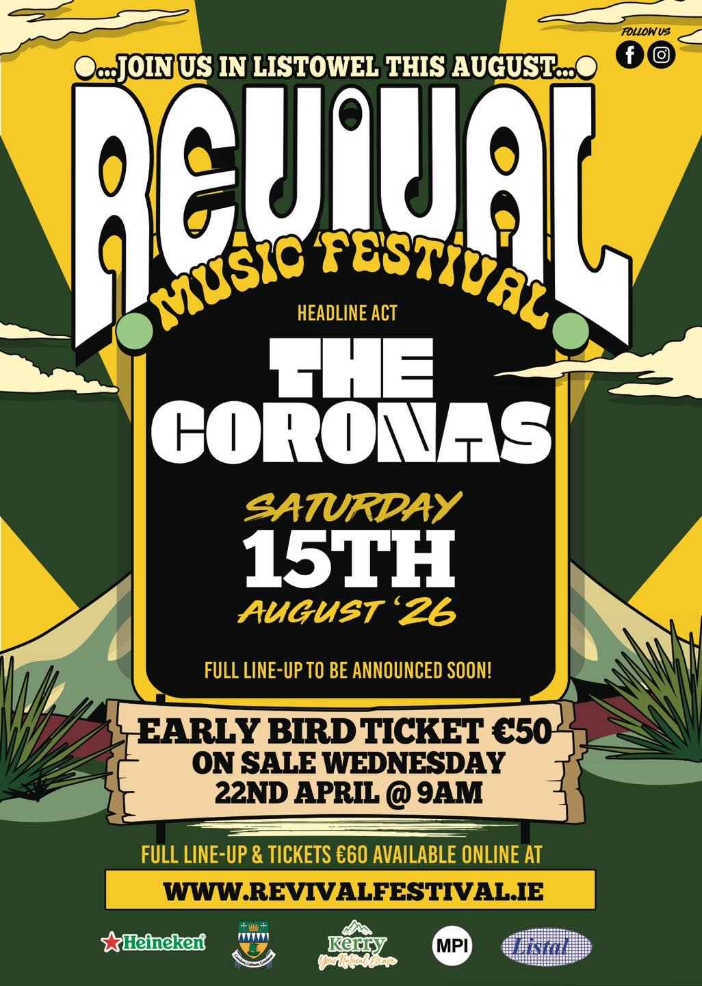 The Revival Music Festival is back to a 1 DAY FESTIVAL to rock out Listowel with an amazing new line-up.